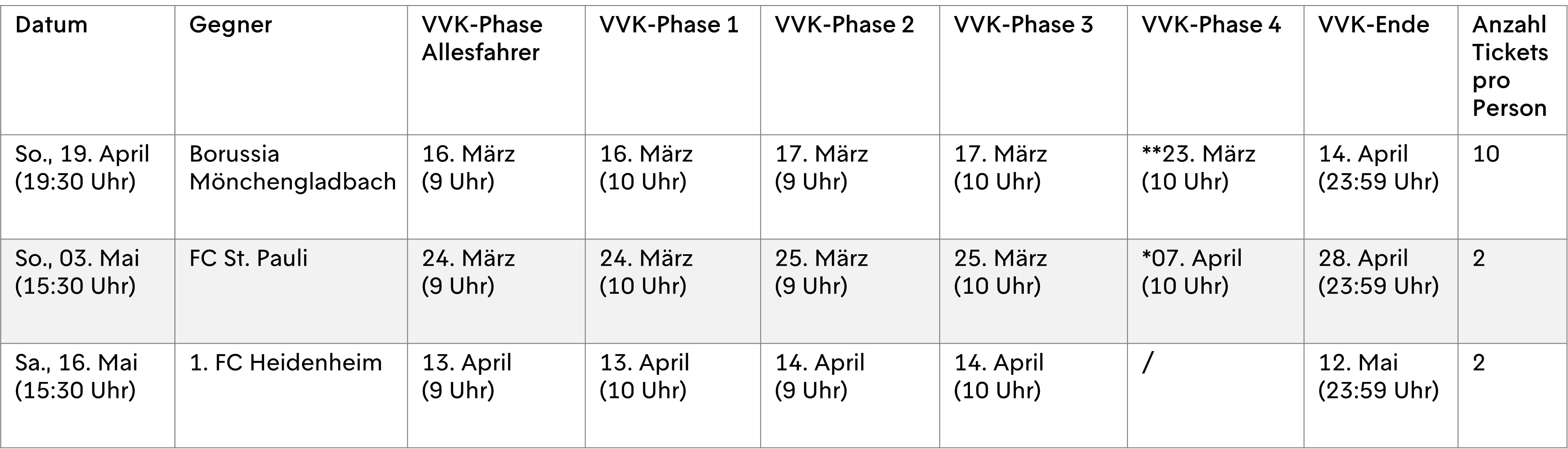 - Fans und Fanclubs aus der VVK1 können zunächst die Hälfte ihrer sonst üblichen Kontingente buchen.