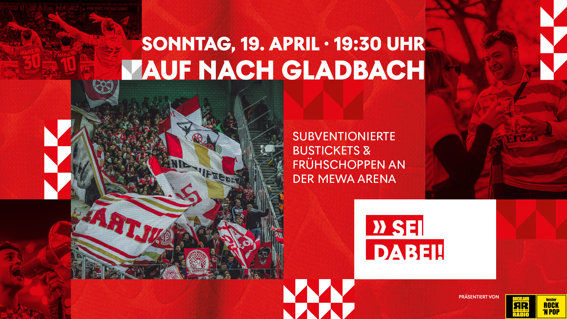 Für unser Auswärtsspiel in Gladbach setzen wir wie gewohnt zur klimafreundlichen Anreise Fanbusse ein. Damit uns möglichst viele 05ER nach Gladbach begleiten können, subventioniert Rockland Radio bei diesem Spieltag die Busse!