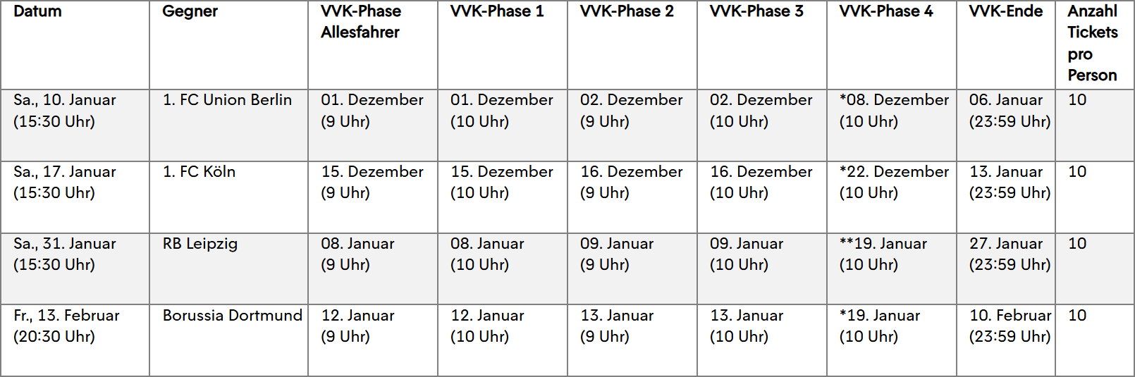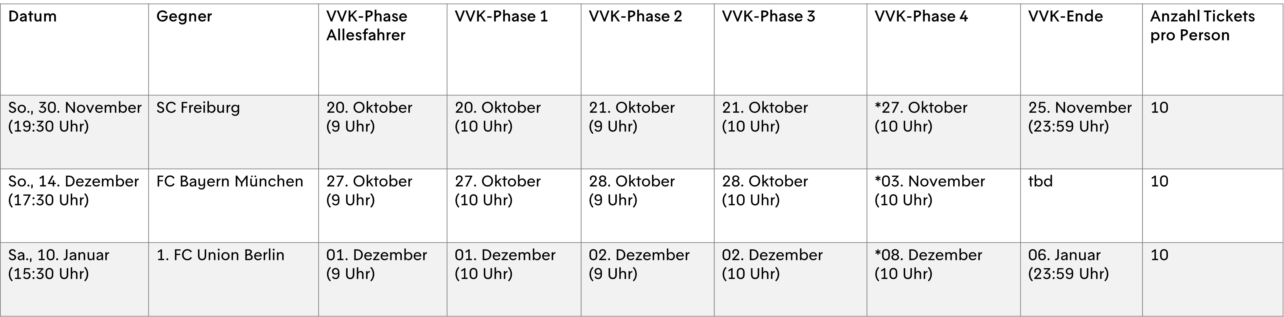 - Fans und Fanclubs aus der VVK1 können zunächst die Hälfte ihrer sonst üblichen Stehplatzkontingente buchen.