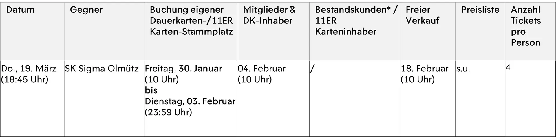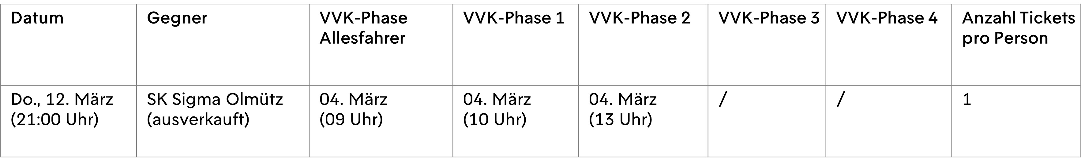 Für Inhaber einer DauerkartePlus wurde der Stammplatz für das Achtelfinal-Heimspiel – wie bei allen anderen Conference League-Heimspielen – automatisiert am 29. Januar gebucht. Damit verbunden, wird das Heimspiel auf der DauerkartePlus freigeschaltet und es wird kein extra Ticket zum Zutritt benötigt. Über den entsprechenden Gesamt-Rechnungsbetrag wurden die Inhaber separat informiert. Die jeweilige Summe wurde in den Werktagen nach dem 29. Januar per SEPA-Lastschrift von jenem Konto, das auch für die Abbuchung der DauerkartePlus hinterlegt ist, eingezogen. Dies konnte ein paar wenige Werktage dauern! Seit Mittwoch, den 04. Februar können sich DauerkartenPlus-Inhaber weitere Tickets sichern.